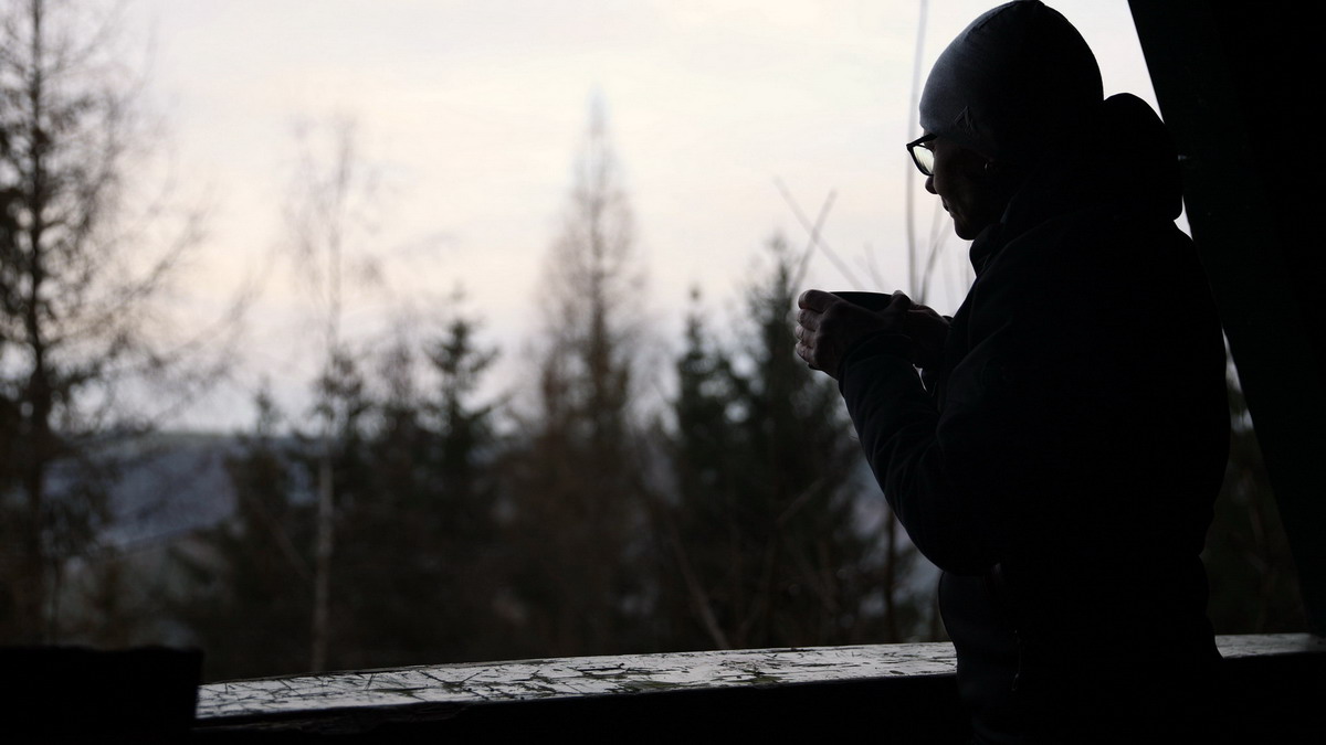 im Auto und lasse am nächsten Morgen nach einem Kaffee